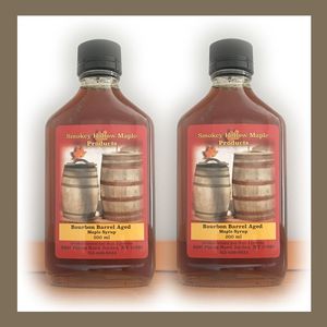 NY State Maple Syrup, aged for at least 6 months in a bourbon barrel, the end product will take on a slight/mild bourbon flavor, although this product will have less than 2% alcohol in it. Great gift for the person who likes sipping on Bourbon or has everything! PRICE INCLUDES SHIPPING.